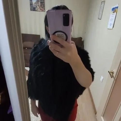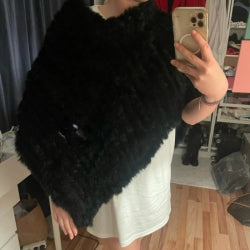 J’adore mon poncho noir, il est hyper doux et la fourrure apporte une touche super élégante.